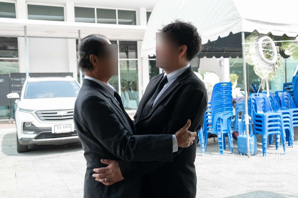 In this photo, the family is thoughtfully discussing who should be invited to present the ceremonial robes during the cremation. This moment represents one of the most respectful and meaningful parts of the funeral. The selection involves careful consideration of closeness, appropriateness, and deep respect for the deceased. This candid moment highlights the family’s commitment to honoring tradition with dignity and care.