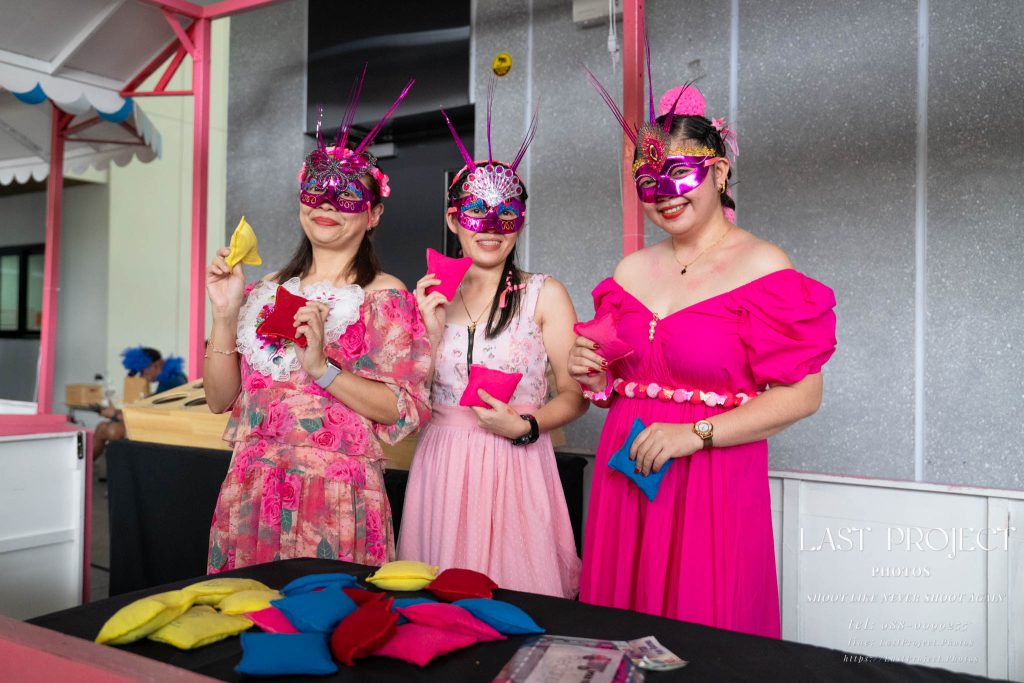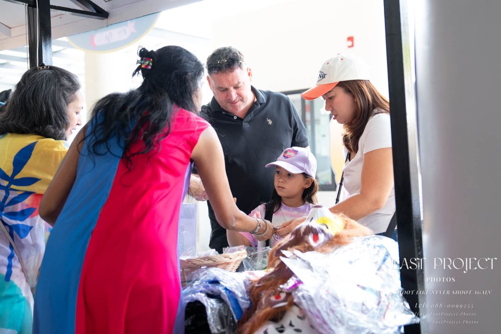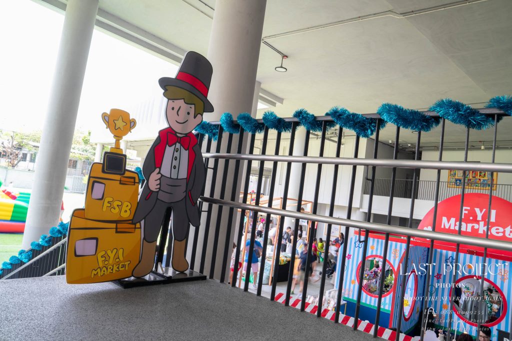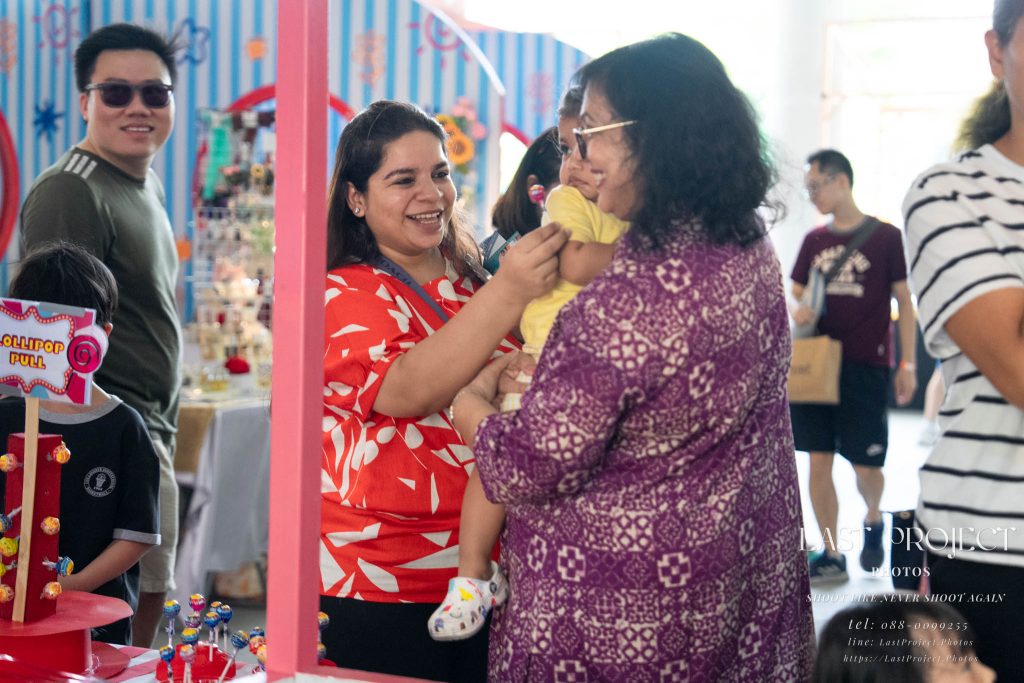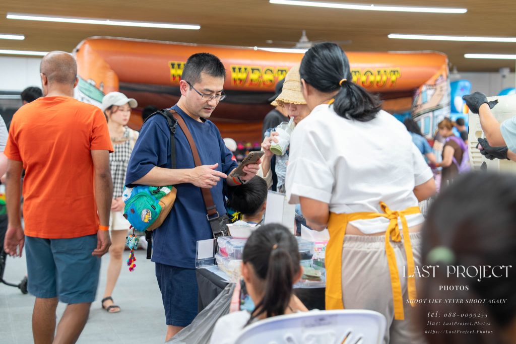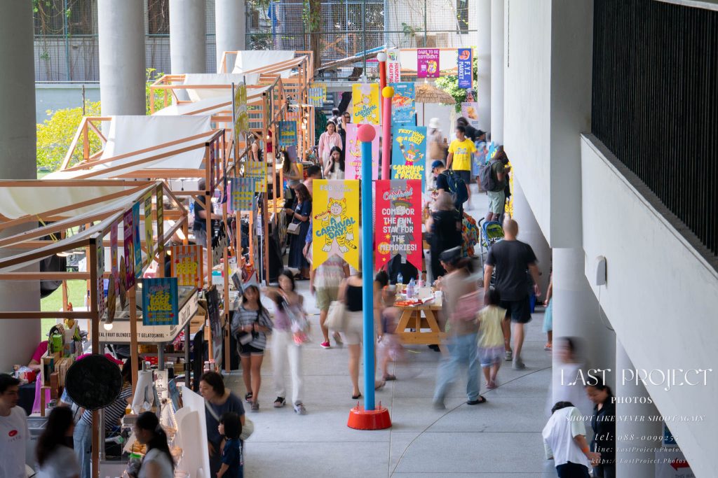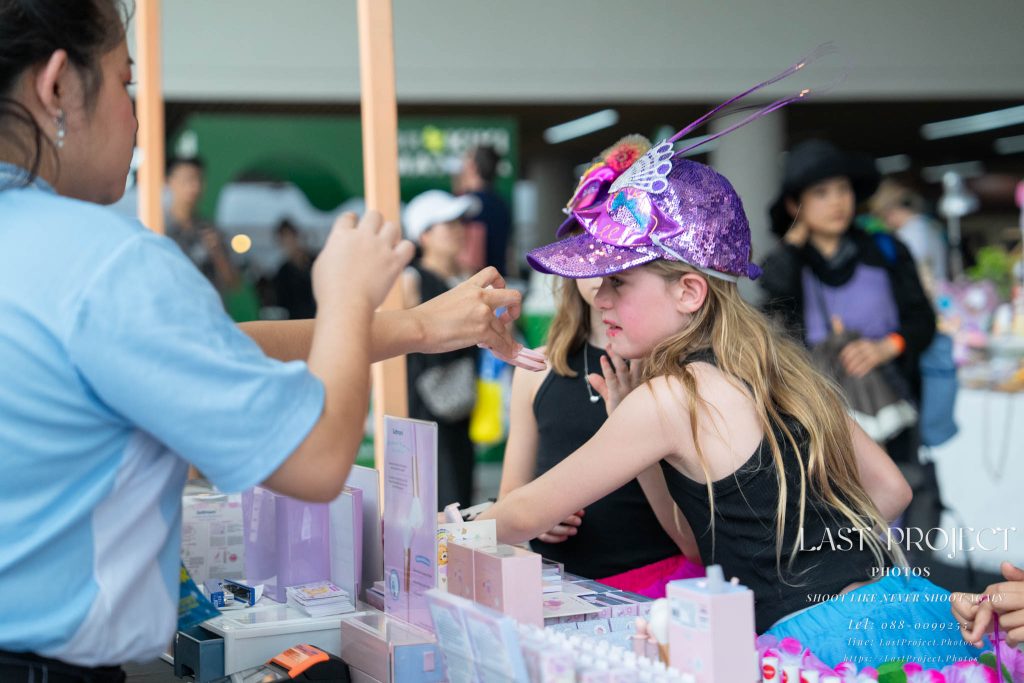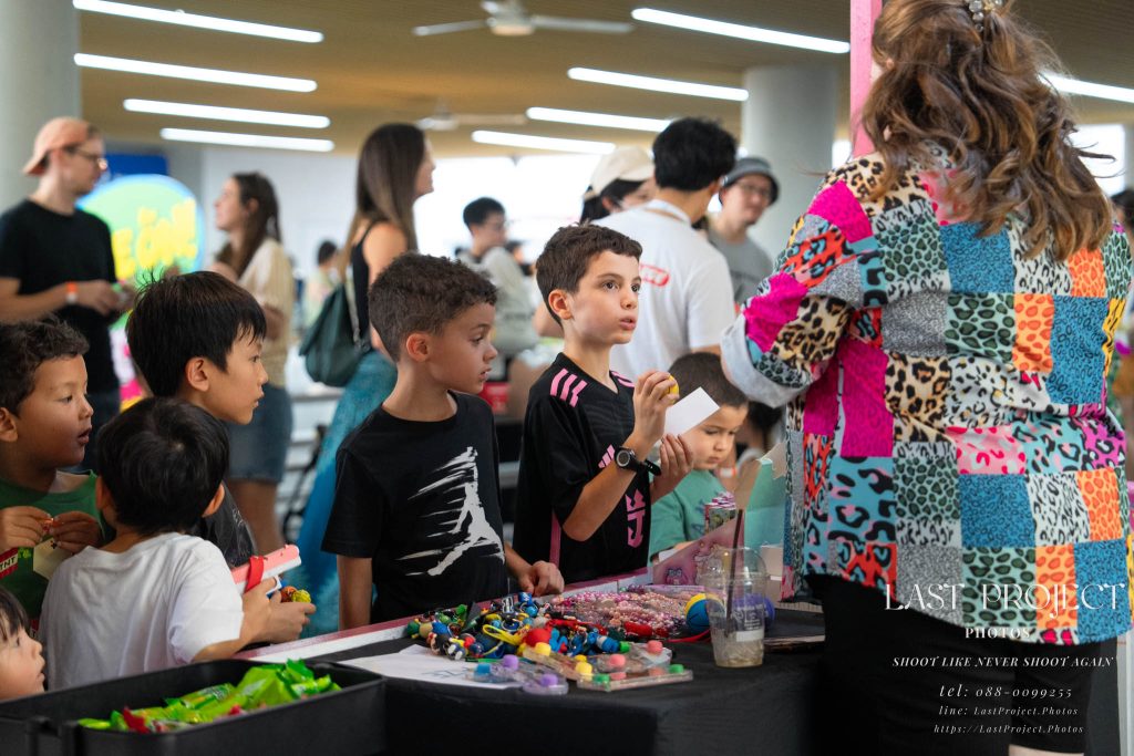 After finishing shooting at the registration area, the photographer moves to a nearby booth, which is a game booth for children.