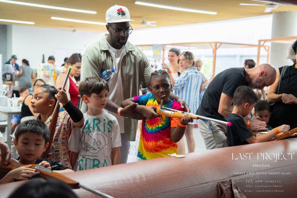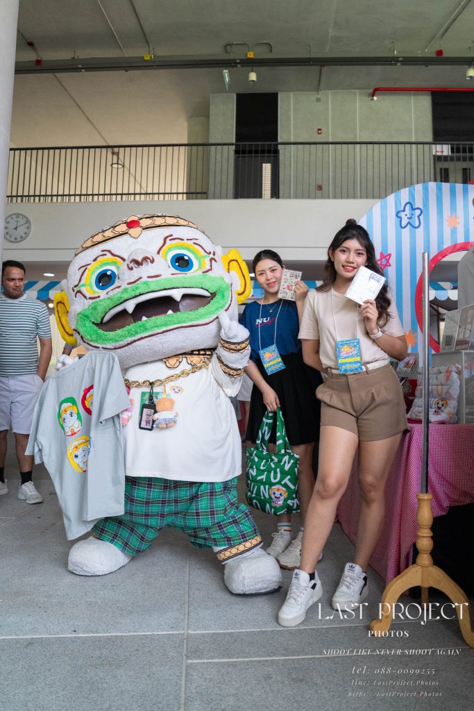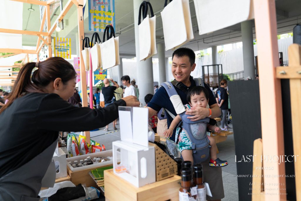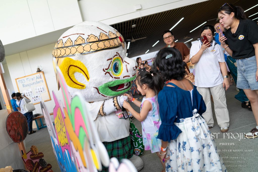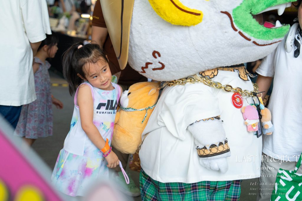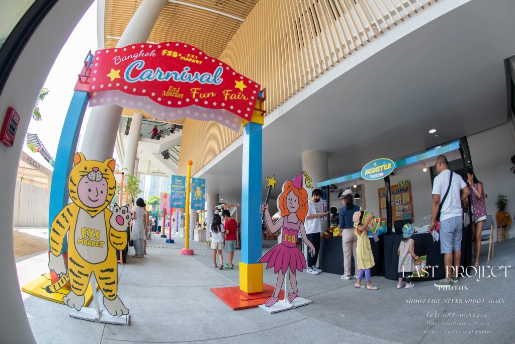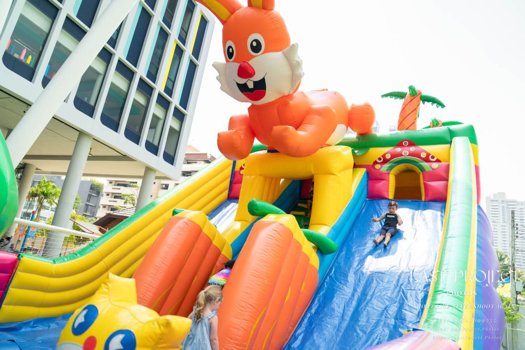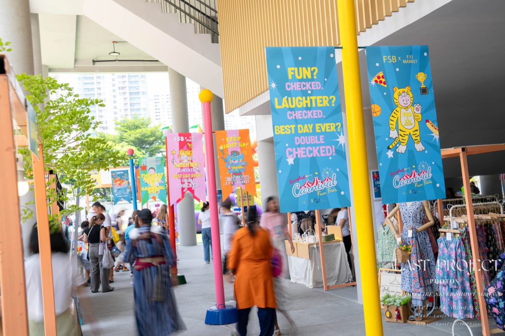 After finishing shooting at the registration area, the photographer moves to a nearby booth, which is a game booth for children.