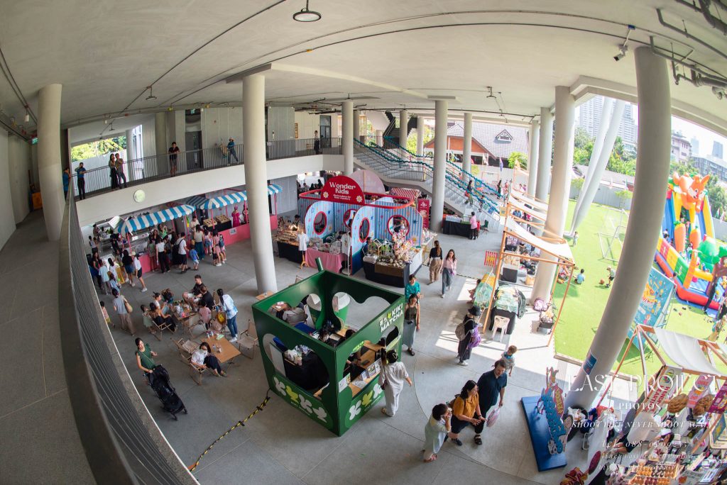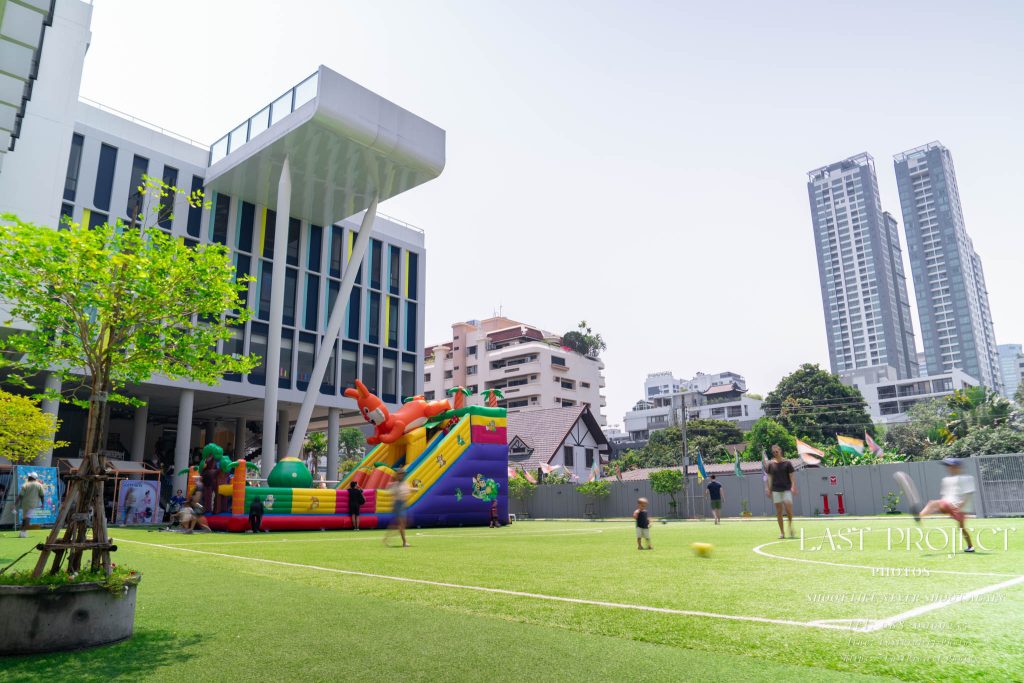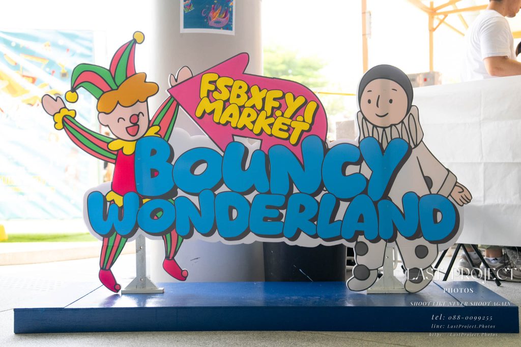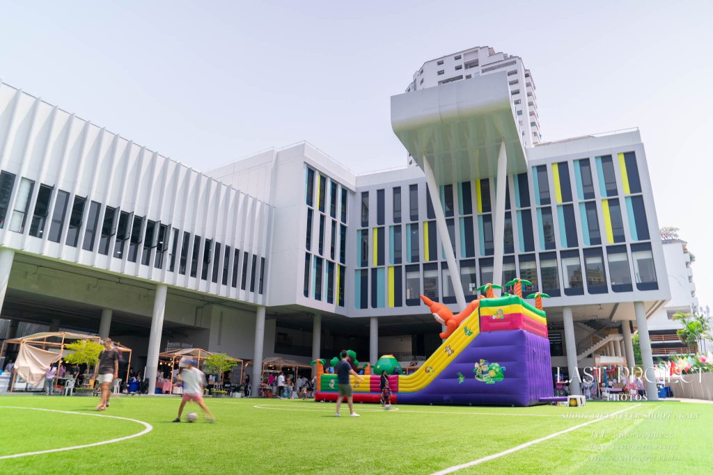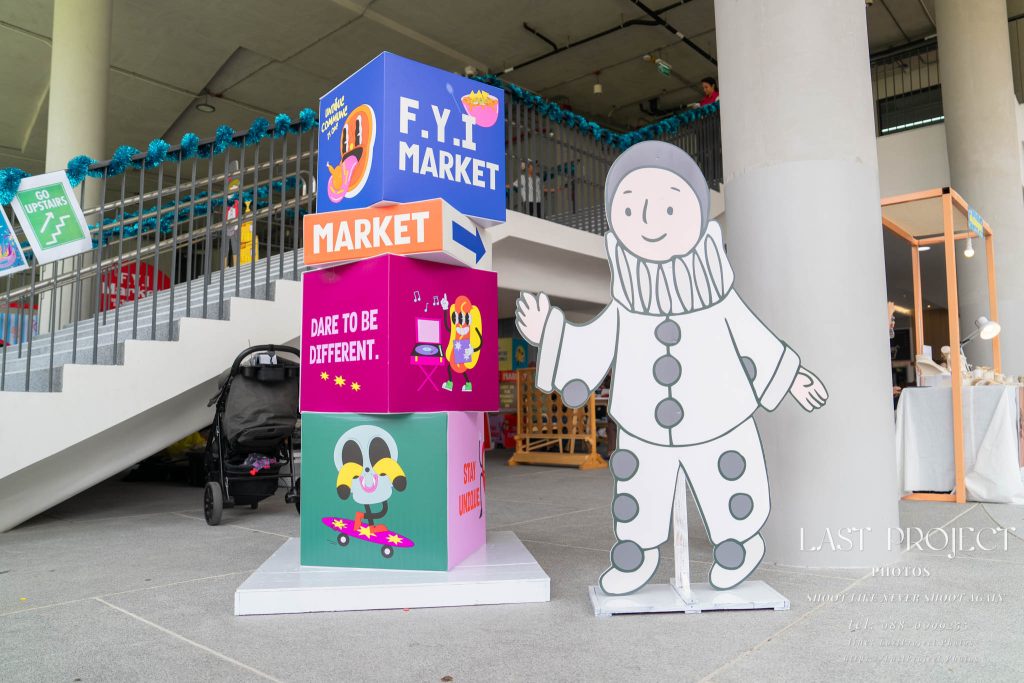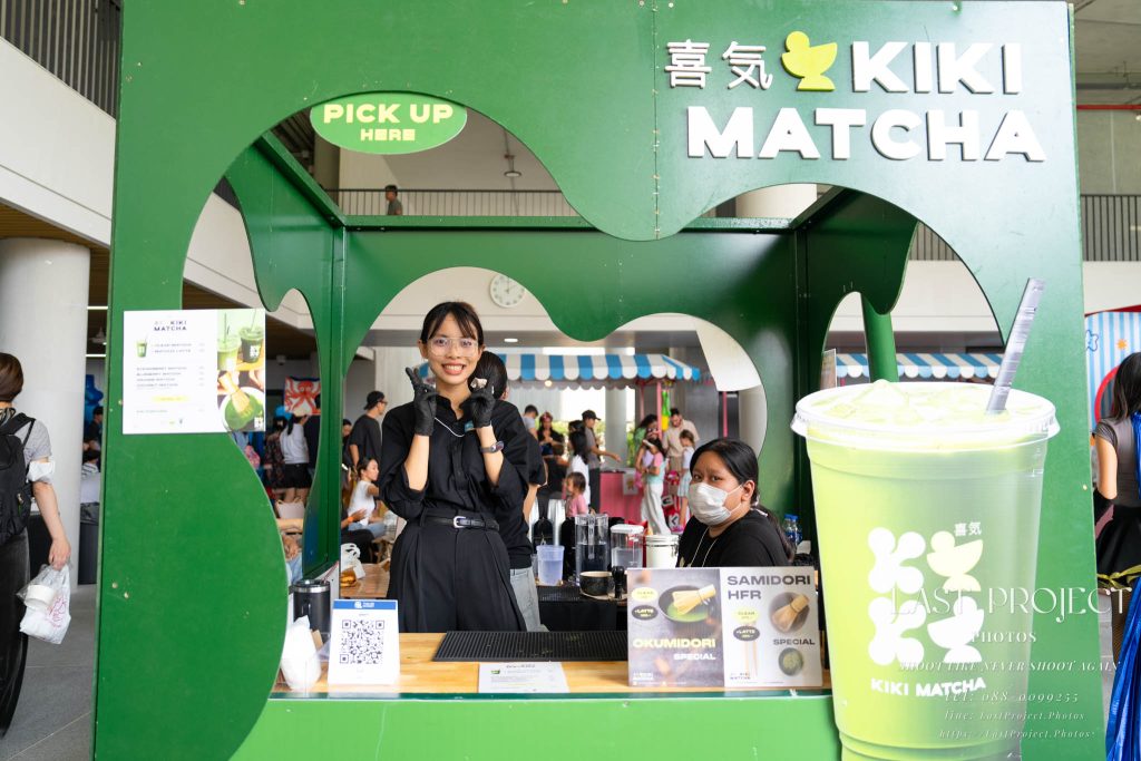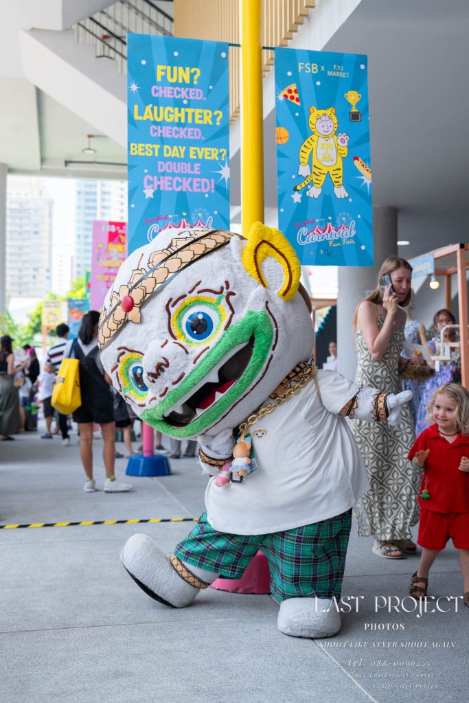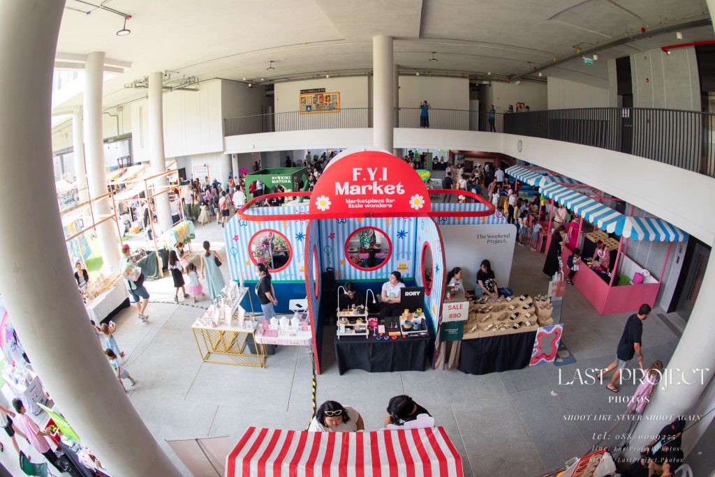 After finishing shooting at the registration area, the photographer moves to a nearby booth, which is a game booth for children.