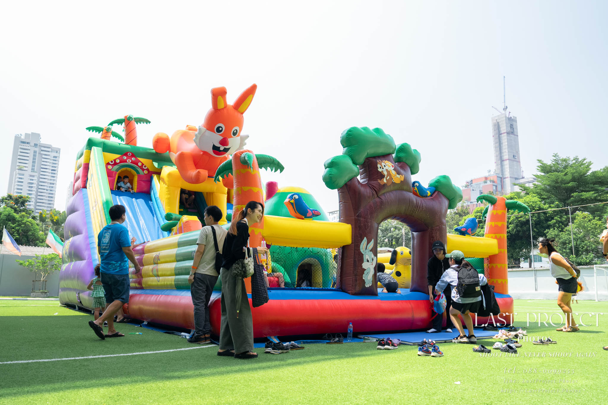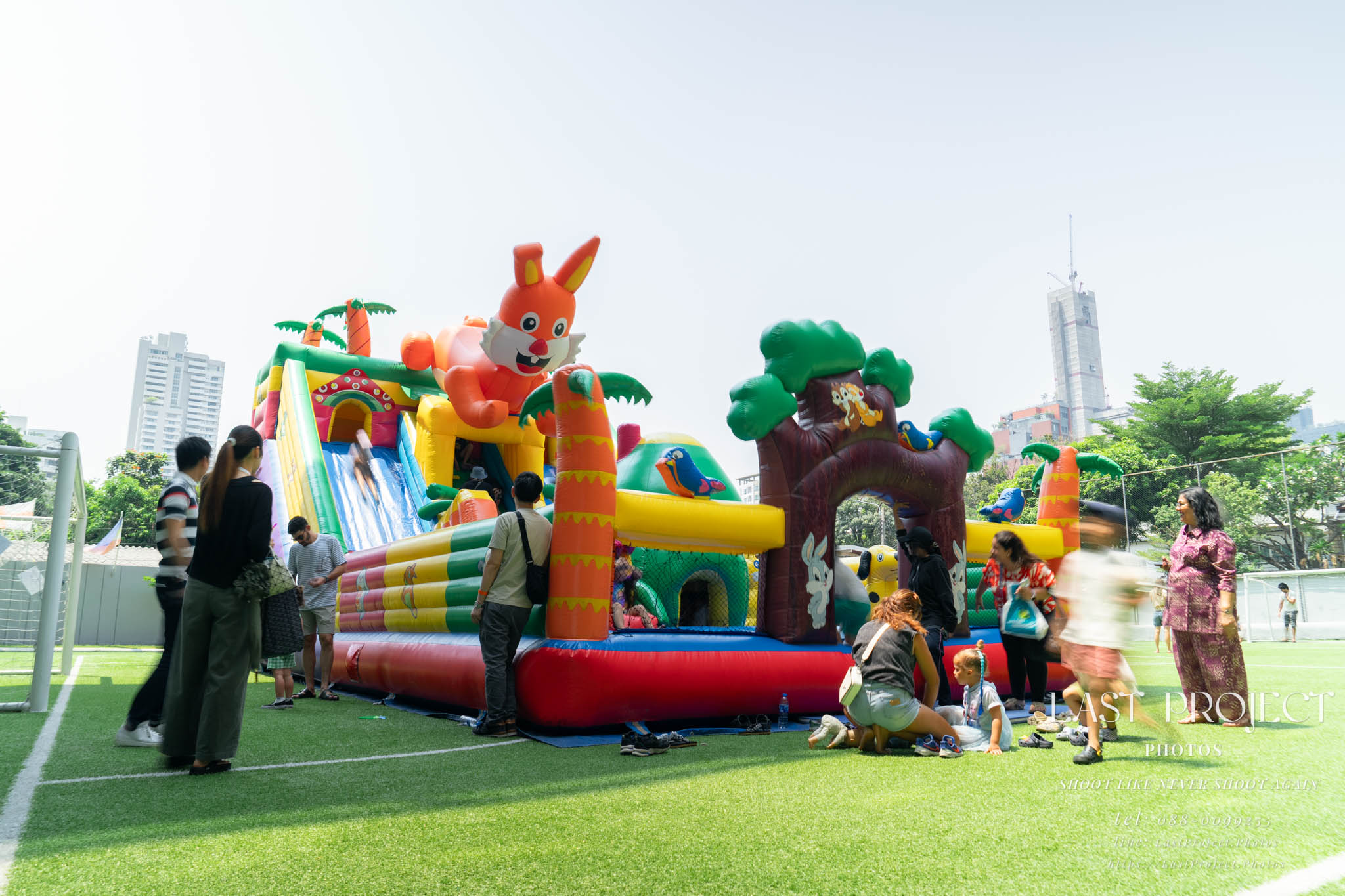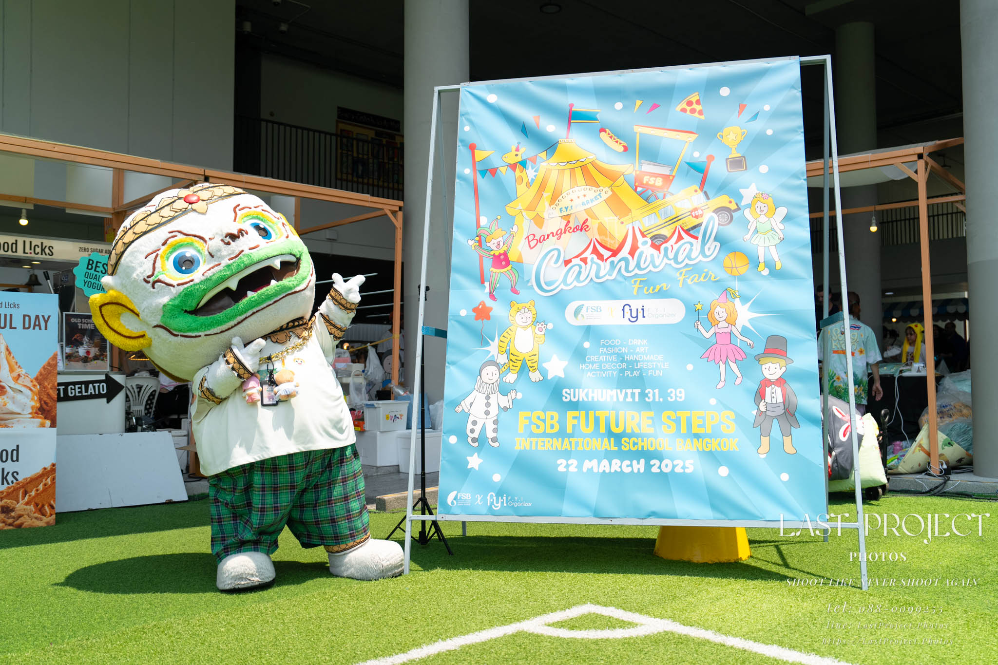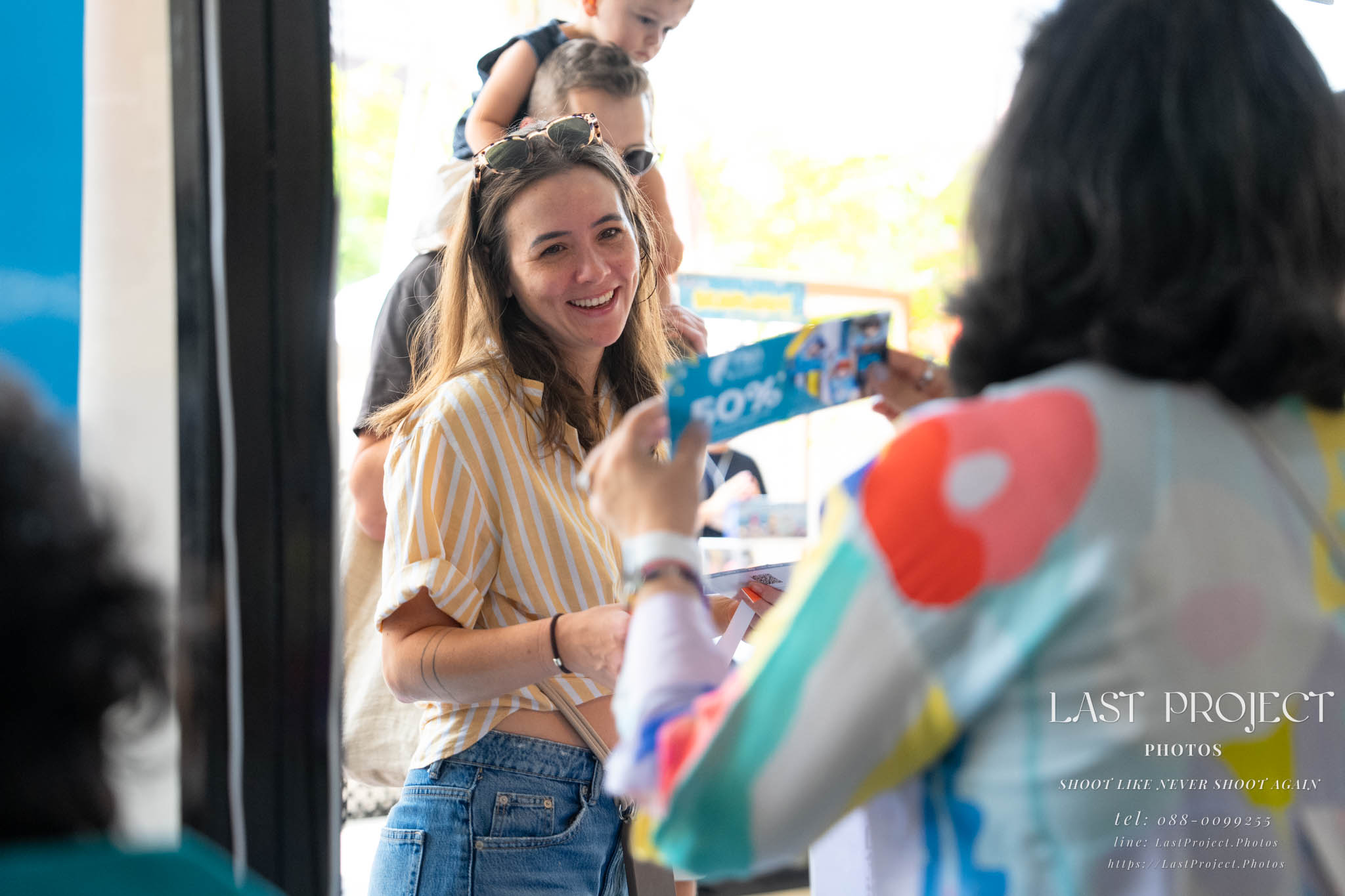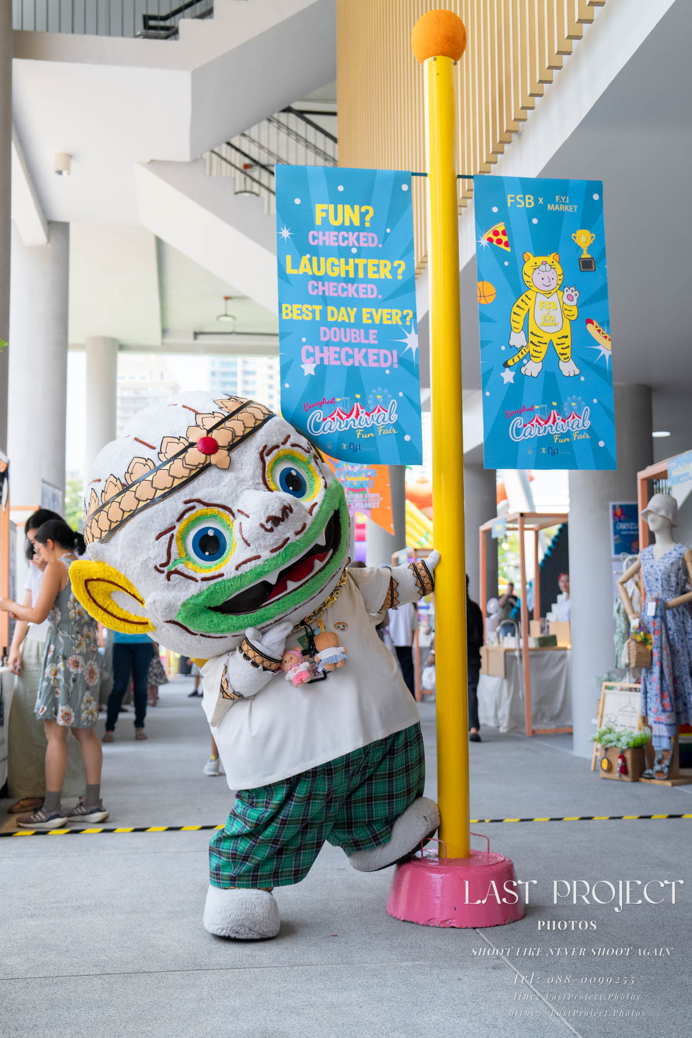 After finishing shooting at the registration area, the photographer moves to a nearby booth, which is a game booth for children.