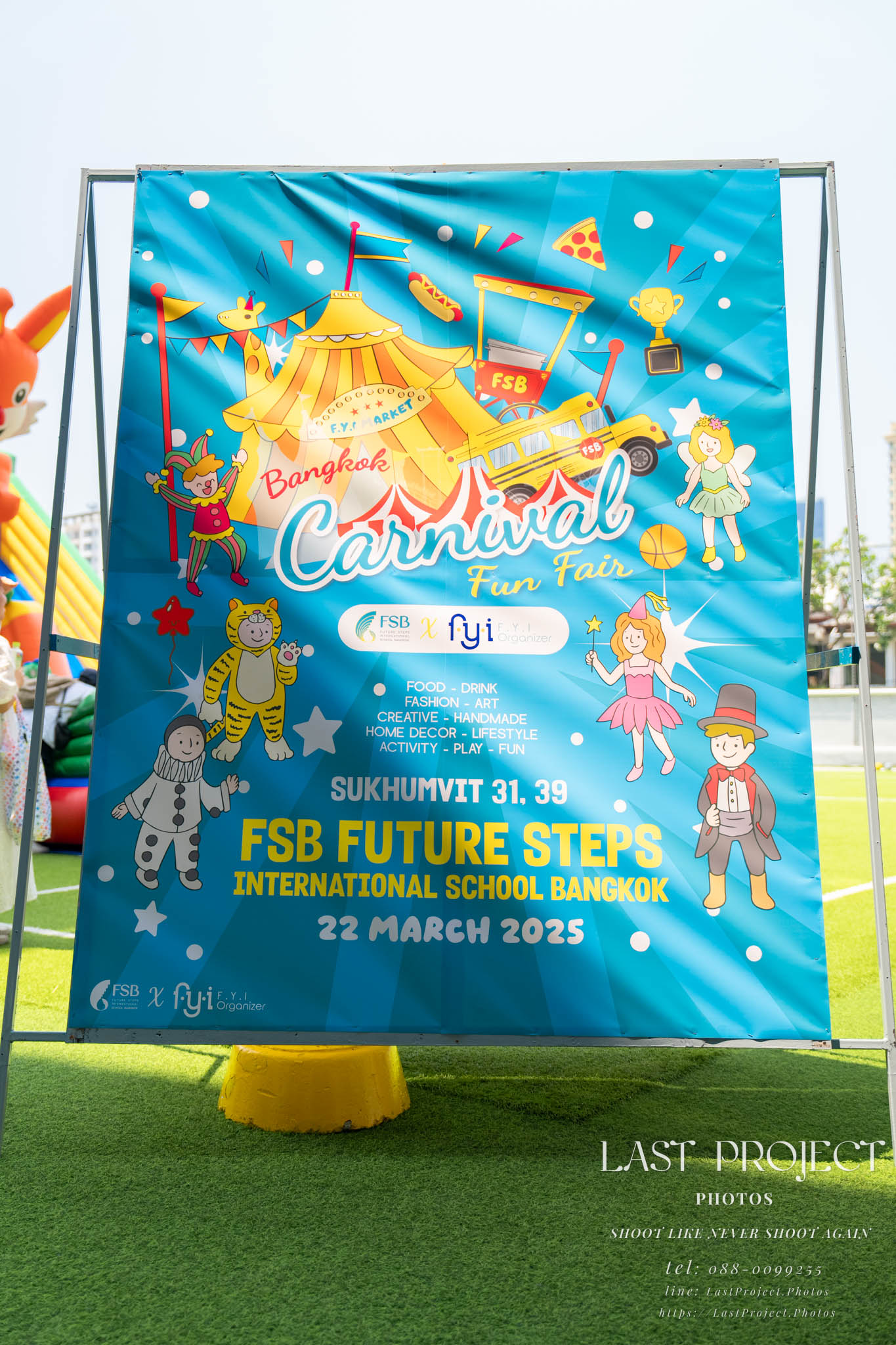 A professional photographer must capture photos of all the signs decorated within the event, as they are part of the event.